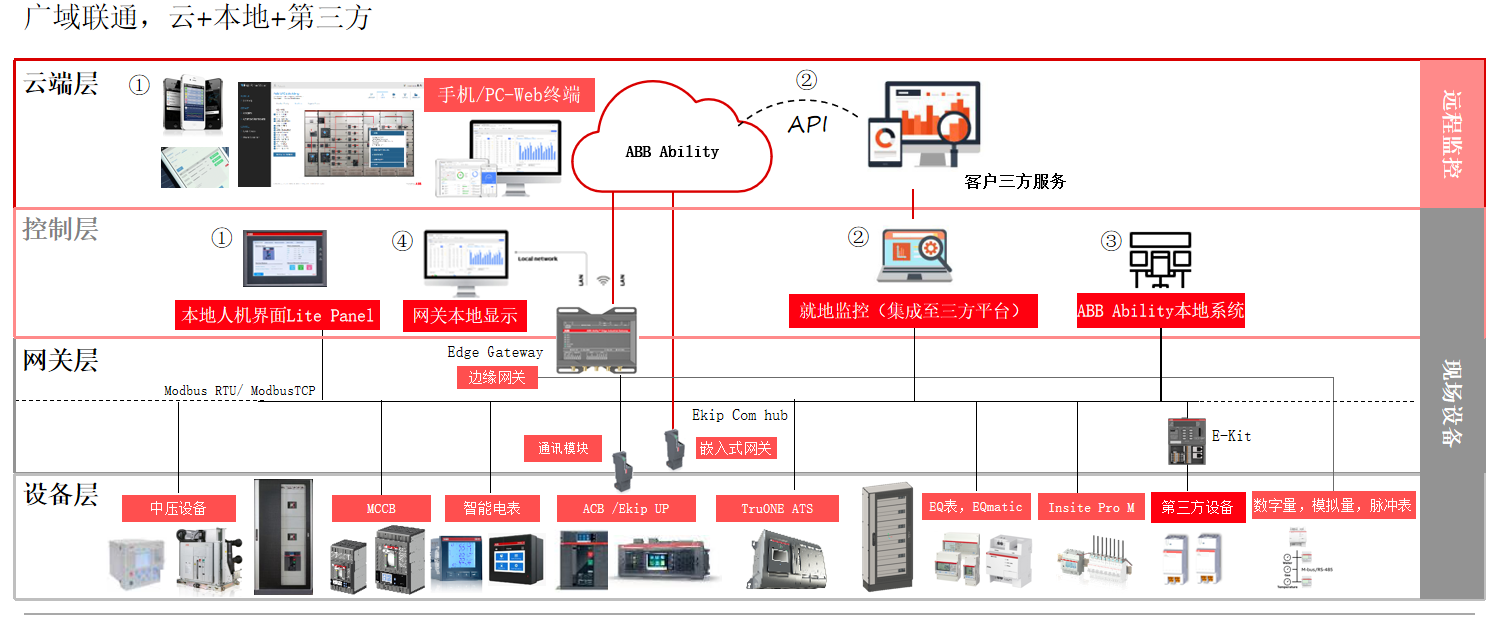 ABB Ability是ABB从设备到边缘计算到云的跨行业、一体化的数字化解决方案和物联网平台。通过端到端数字化技术,在边缘计算和云端平台及应用上实现设备互联闭环,为客户提供真正的差异化服务。