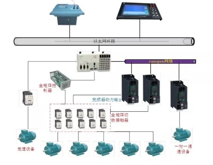 冷暖两用变频 用一台变频器实现夏季冷却水泵变频,冬季温水泵变频的两用功能切换使用。
